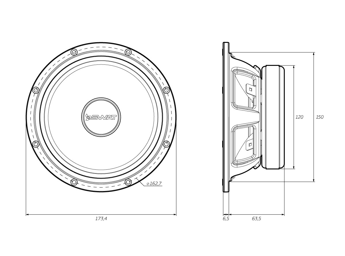 ОписаниеГромкий динамик SWAT REV-65 Pro с большими возможностями. Этот среднечастотный динамик способен эффективно работать в полосе от 120 до 8000 Гц.