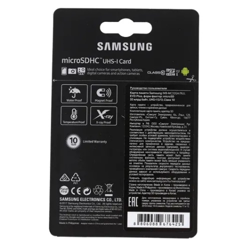 Карта памяти Samsung EVO Plus microSDHC 32 Гб [MB-MC32GA/RU] - практичный и полезный аксессуар, необходимый для каждого владельца портативного устройства.