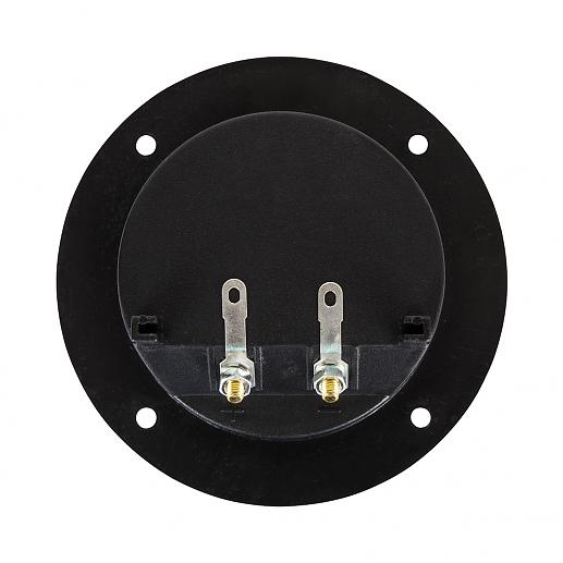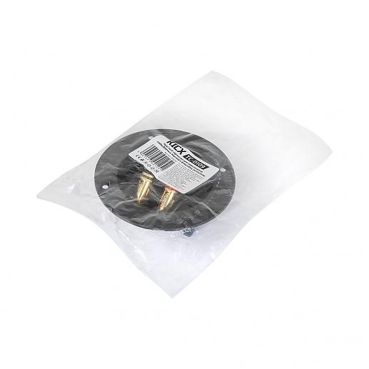 Круглая клеммная коробка для сабвуферных ящиков Kicx TC-0109, клеммы для подключения 1 катушки с зажимом проводов пружиннными клеммами, внешний диаметр 106мм, монтажный диаметр 75мм, диаметр отверстия для кабеля до 4,3мм.