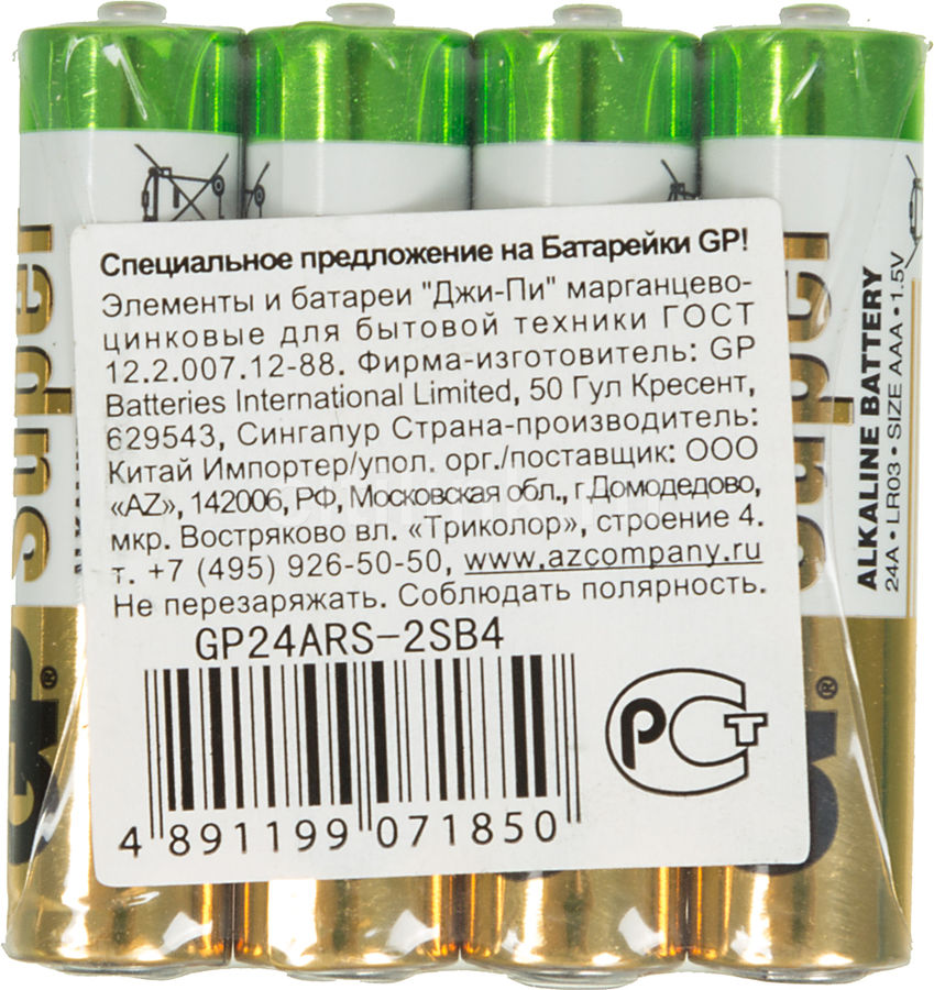 Комплект из четырех батареек стандарта AAA имеющих широчайший спектр применения. Батарейки серии Super Alkaline отлично подходят для устройств со средним энергопотреблением и долго не теряют заряд. - Отзывы