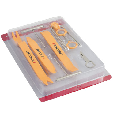 ОписаниеСпециальный набор Incar TK-1 включает в себя наиболее полный комплект ключей для снятия штатных автомагнитол. Используя их, вы решаете вопрос как снять магнитолу, фальшпанели, обшивку не повредив поверхности, не испортив внешнего вида интерьера салона автомобиля.