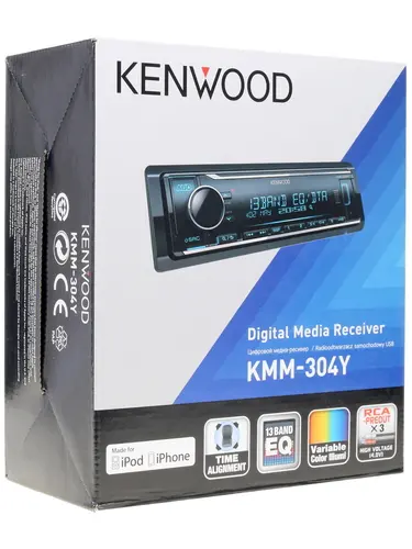 Проигрыватель KENWOOD KMM-304Y работает от бортовой сети 12 В. В данное устройство встроен 24-битовый цифро-аналоговый преобразователь. Он выполняет обработку сигнала, улучшает звучание вашей любимой музыки.