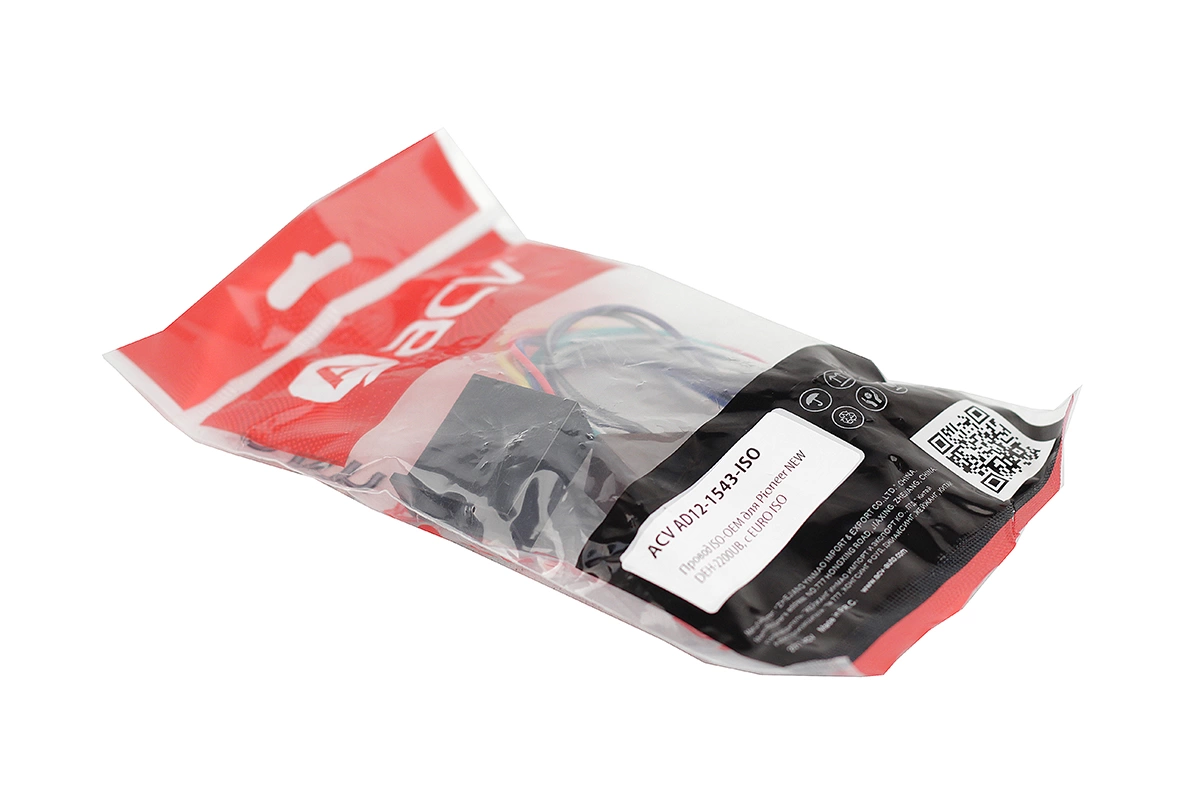 ACV AD12-1543-ISO — специализированный адаптер-коннектор для подключения автомобильных магнитол Pioneer с разъёмом 16-pin к стандартной ISO-системе автомобиля.
